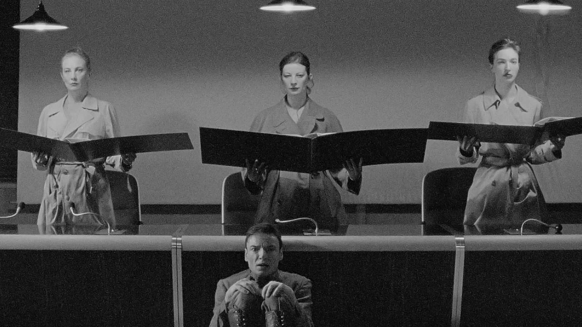 Mauser (1999) : Au pays des soviets, un tribunal, un oratorio poétique et terrifiant écrit par Heiner Müller. Un procès en chœur, sur l’élimination des ennemis de la révolution. On pense à Staline, Lénine, Pol Pot… La pièce est tirée d’un motif du Don Paisible de Cholokhov. Le film a été réalisé lors d’une performance filmée en public dans la salle du conseil municipal de la ville de Vénissieux.